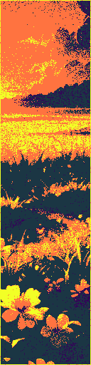 To match the image colours to the palette I used color quantization, and with full, half and monochrome palettes I need 3 images. The full and monochrome images each have 4 colours, but the halftone is done a little different. We dont quantize the half tones, we quantize the full tone and combine it with the monochrome. This leads to images with 4 hues, each with up to 4 tones. It was a happy accident really, but it adds a lot of depth to the image while keeping the restricted colour palette I wanted, so I decided to keep it.